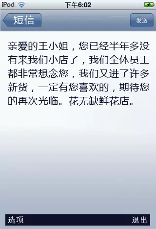 在办理会员后,客户即刻收到商家的欢迎短信,大大增加了购物体验。(短信内容可由商家自己进行设置)。