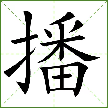 触理给基到末 形声字。从手,番声。西周金文中"牧"借为"播",有播迁、播放之义。本义是下种,撒种。《书‧大诰》:"厥子乃弗肯播,矧(shěn,况且)肯获。"《隋书‧经籍志三》:"农者,所以播五谷,艺(种植)桑麻,以供衣食者也。"引申为传布、分散、实行、逃逸等义。这些意义读bō。又读bó,通"簸",摇动。《庄子‧人间世》:"鼓荚播精,足以食十人。""播"在古书中通"藩"指封建王朝的属国或属地。《尚书大传‧洪范五行传》:"播来自国率相行祀。"郑玄注:"播读360百科曰藩。"