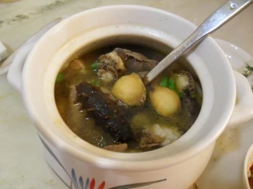 制法:海参切小丁,冬笋、香菇切末。猪油烧熟,煸炒作料、葱、姜,加入鸡来自汤,捞掉葱姜,倒往扬入海参、冬笋、香菇、调料、煮沸勾芡,撒上胡椒粉即可。