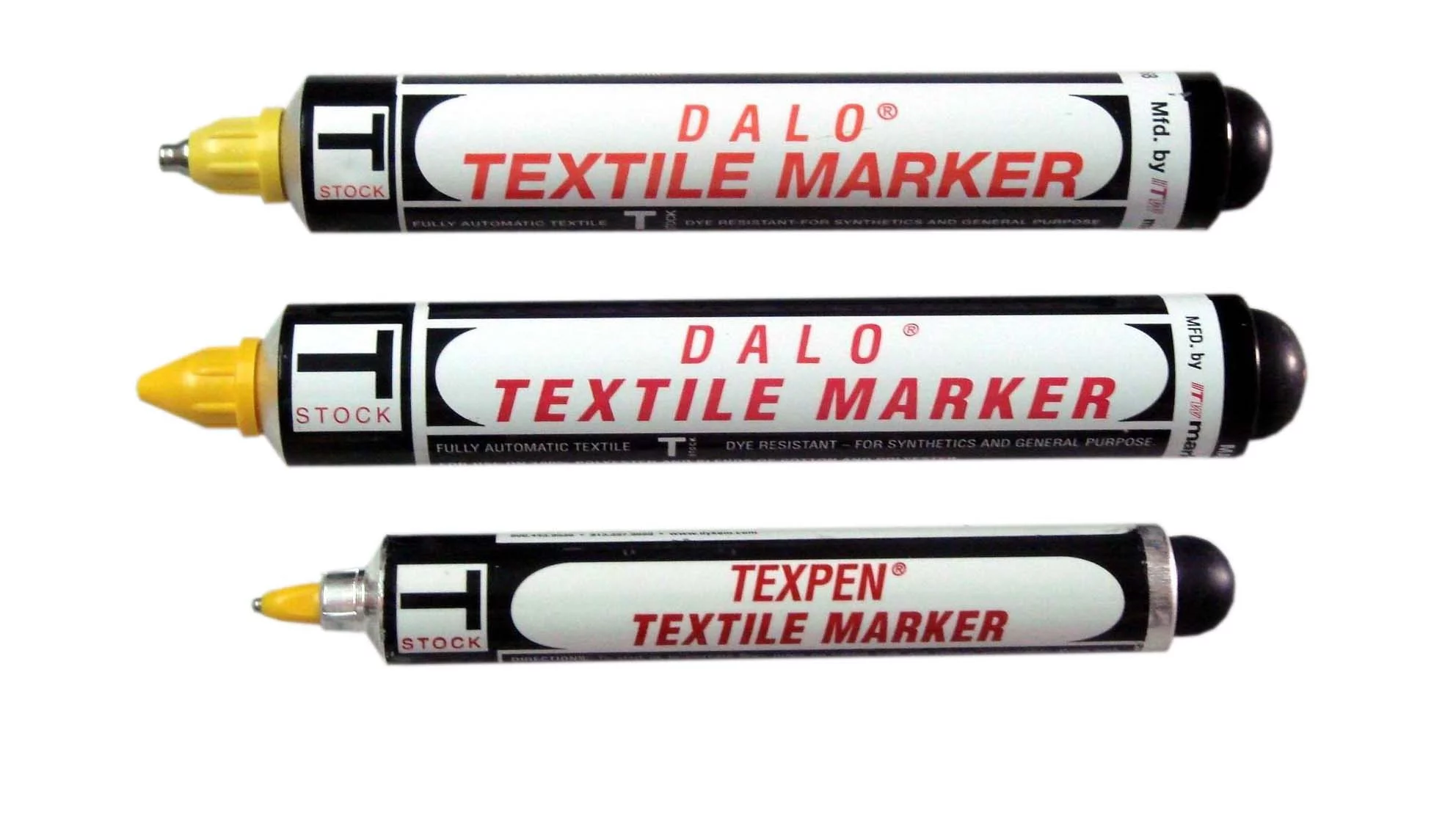 纺织标记笔分有三种鸡笔咀:大号钢咀(大笔划);大号胶咀(中笔划);小号钢咀(细笔划)。常有墨水的颜色有黄色、黑色、红色、白色、绿色、蓝色