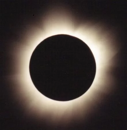 之所以会发生日全食,是因为存在一种神奇的对称性。太阳的直径是月亮的400倍,而它距地球的距离正好也是月亮的400倍。结果,当月亮完全处于地球和太阳之间时,对那些完全处于月亮阴影中的人来说,太阳的表面便被完全遮挡了。太阳变成了黑色,只留下一个金色的光环,天空变成了靛青色。鸟儿此时会失去方向,或者会飞回巢中,蝙蝠和其它夜行动校正备列物则可能睡眼惺忪地出来活动。