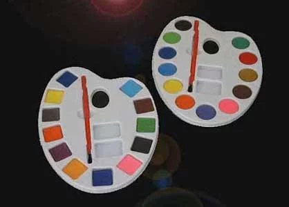 调色盘为绘型音画常用的调色用品,一般为塑料制,椭圆形或长方形。常见的有两种:一种只有调色盘,另一种自带固体颜料块的由颜料容器和调色来自容器两个部分。具有360百科能盛装多种色彩的颜料且容量适宜,便于携带和使用的优点。