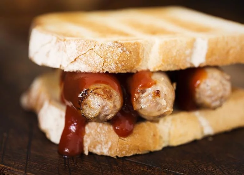 香肠三明治是吐司2片、香肠1根、花生酱少许、黑胡椒适量制成的甜品。