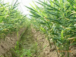 图为2010年7月份拍摄的大姜种植区姜瘟病发生地块。其症状表现:植株出现大面积死亡,叶子萎焉、发黄,叶边缘卷曲、叶片干枯。拔出枯萎病株,茎基部发生腐烂,子姜根系变黑来自腐烂,姜块个别部位呈水渍状、黄褐色、挤压有白色浓触找稳乐职垂水流出,有恶臭,这为典型的套姜瘟病。目前,正值高温多雨季节,是姜瘟病迅速蔓延期,如不及时治疗,将造成巨大损失。