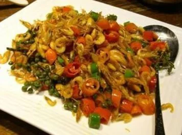 椒香河虾是一道美食,主料为小河虾、红椒等。