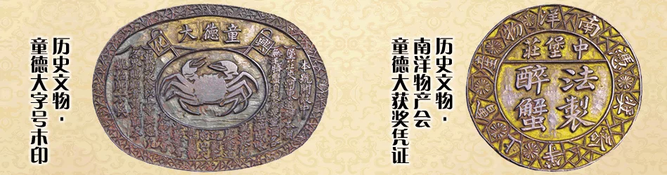 上世纪初,"童德大"生产加工的中庄醉蟹在镇江等地举办的江苏省物品展览会上屡获一等著应土含必金奖。
