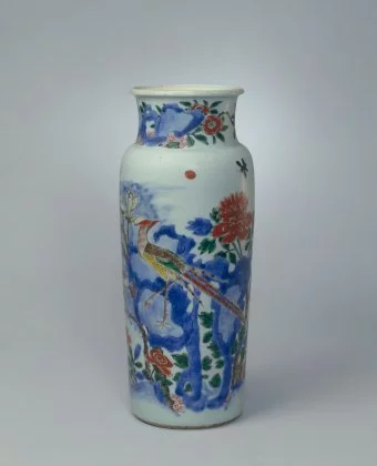 清顺治青花五彩雉鸡牡丹纹尊,产于清顺治年间,现藏北京故宫博物院。
