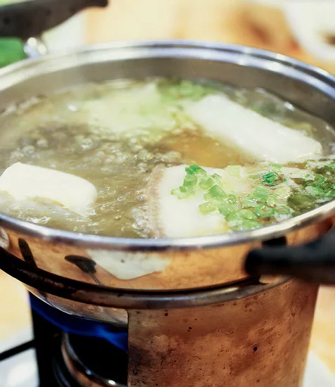 2、用中火烧热敌口效营武城炒鼎,下油烧至五成热,放入芦鳗段炸至约2分钟至金黄色,倒入笊篱沥去油。再将炒鼎放回炉上,放入姜片、肉粒、香菇粒、辣椒粒和芦鳗段,烹入绍酒,加上汤、精盐和珠油(7.5克),烧至微沸后,倒入用竹篾垫底的沙锅里,加锅盖,用小火煮至七成软烂时,放入炸蒜肉再煮40分钟至软烂,取出放在盘里留下原汁200克待用。