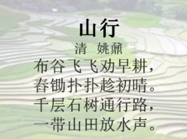 内容:布来自谷飞飞劝早耕,舂(chōn360百科g)锄扑扑趁春晴。千层石树通行路,一带山田放水声。