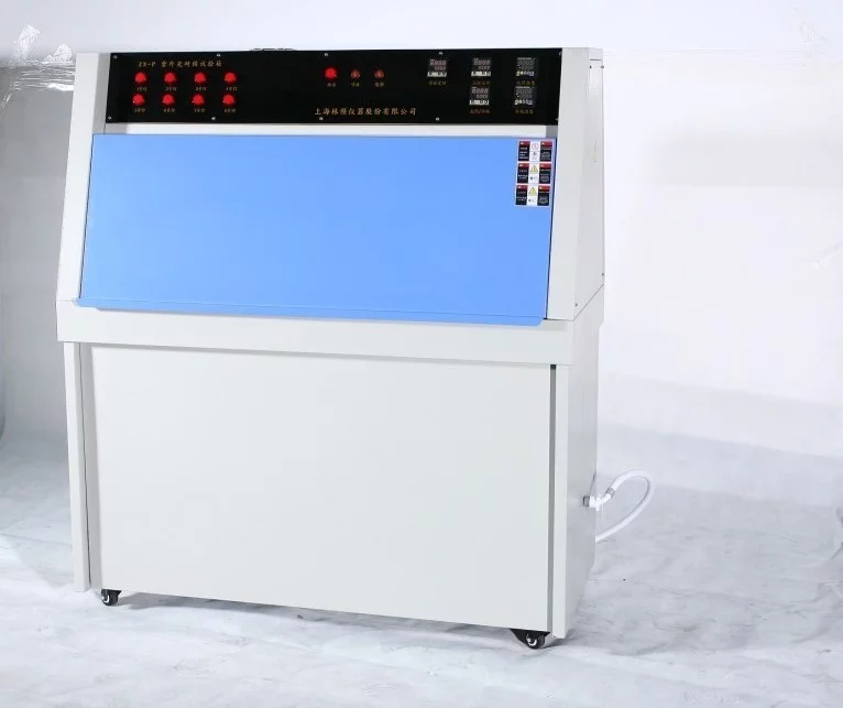 紫外光耐气候试验箱可模拟由阳光、露水造成的危害。设备是用紫外灯模拟阳光照射的效果,用冷凝湿气模拟雨水和露水,待测材料置放於一定温度下的光线和潮气交替循环中进行测试危害的类型包括:褪色、变色、失光、粉化、开裂起泡、脆变强度衰退和氧化。试验可以帮助你选择新的材料,改进现有材料以及评价配方的变化是如何影响产品耐久性。