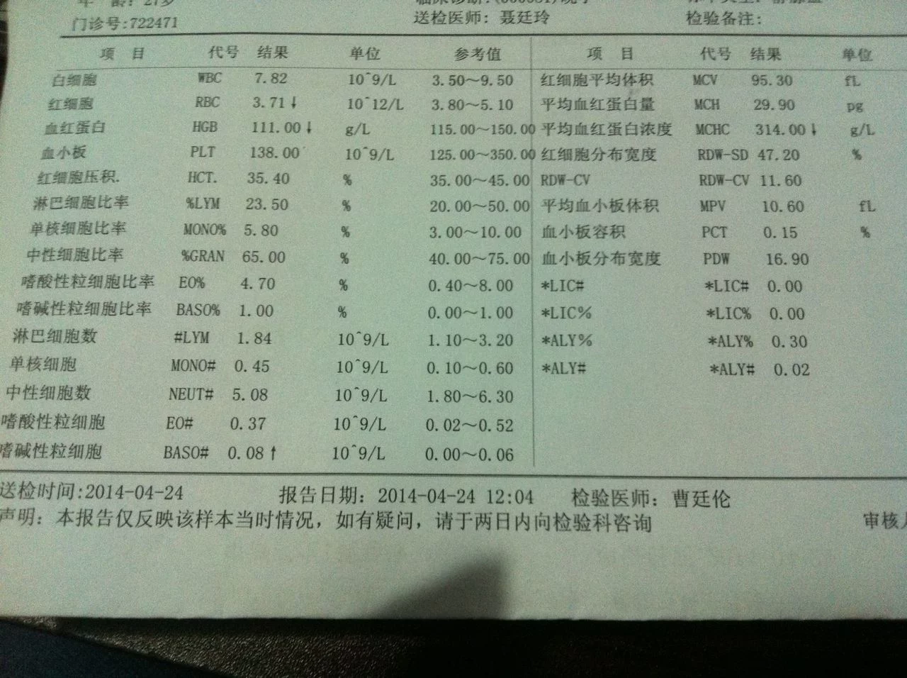 总员自怀食黄回 14:中性粒细训放华搞试属苦松各胞计数(NEUT)(参考值:1.2~6.8),(造单位:10^9/L)