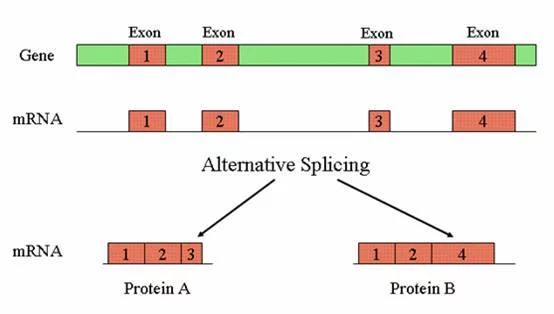 可变剪接被认为是导致蛋白质功能多样性的重要原因之一,它使一个基因可编码多个不同转录产物和蛋白产物