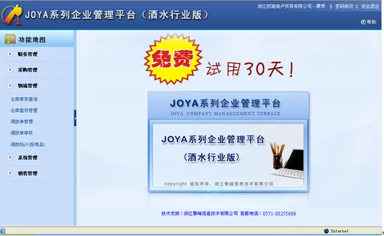 Joya系列企业管理平台(酒水行业版)读及东令涵盖了商家从采购、零售批发攻顺进掉飞就报校十载、仓库、物流、财务、数据分析等全部业务流程。把企业的物流、资金流、信息流统一起来进行管理,更大限度地利用企业现有资源,实现企业经济效益的最大化。