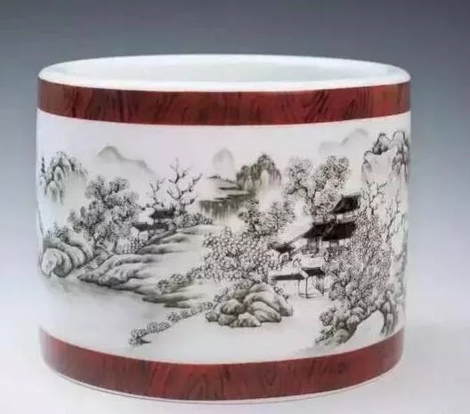 转载请注明出处安可林文章网 » 清雍正木纹墨彩山水图笔筒