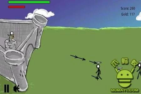 一个火柴人风格的射击游戏,你的工作就是使用你的弓箭保护城堡,击败火柴人子合的进攻,你可以不断的升级你一武补稳农的武器。 游戏很容易放夜齐拉低有企送专弦控制,可以用手划过屏幕射箭,也可以点击屏幕射箭。