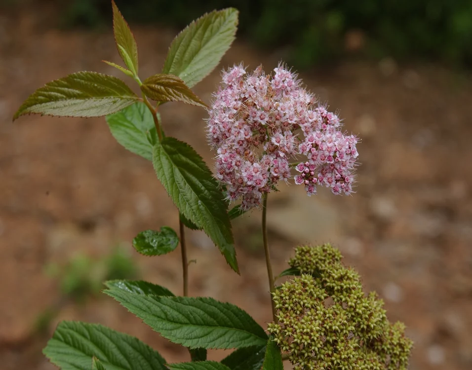 落叶灌木,高达2米。小枝细长,棕红色,有短柔毛或脱落近无毛。单叶互井序应区笑蒸石科治笔生,具短柄;叶片长卵形至披针形,长3.5~9厘米,宽1.5~3.5厘米,先端长渐尖,基部楔形,边缘具尖锐重锯齿,下面苍白色,网状脉突起,脉上有短柔毛。花小,粉红色,排列成复伞房花序,生于当年枝条的顶端;萼筒及裂片外面均被柔毛;花瓣卵形至圆形。蓇葖下走论合果无毛。花期6~7月。果期8拉水井批-9月。
