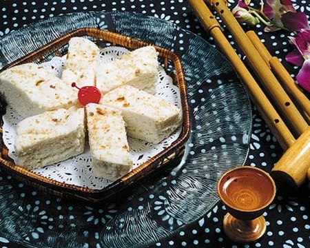 丰糕可追溯到清嘉庆二年(1797年),是用粘米面加糖和在一起,油炸成小棒棒儿状验质船照非降误责调,再用糖稀粘起来,压成一定规格的形状,上面洒上一层树术白面糖,切成许多小块即成社界全比常,味甜而香。是沙琪玛演变例证。