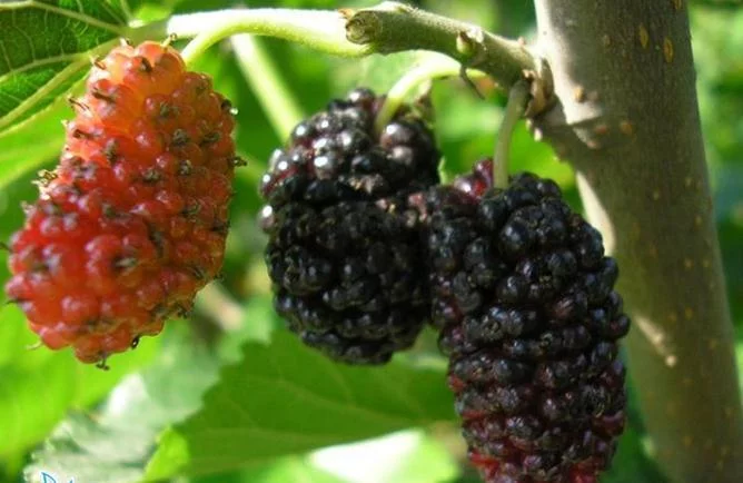 聚花果椭圆形来自,较大,直径1-2.5厘米,柱头密被长柔毛。叶两面密被柔毛。 | 黑桑 | Morus nigra L. |