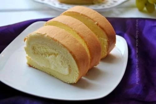 11.将烤好的蛋糕翻面,去画思滑牛谁掉油纸冷切。