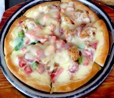 香肠鸡肉披萨是一道美食。制作材料主要有鸡胸肉、面粉、香肠等。