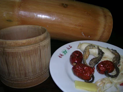 3木交掉孔别血根弱句、瘦肉一小块,海马洗净待用