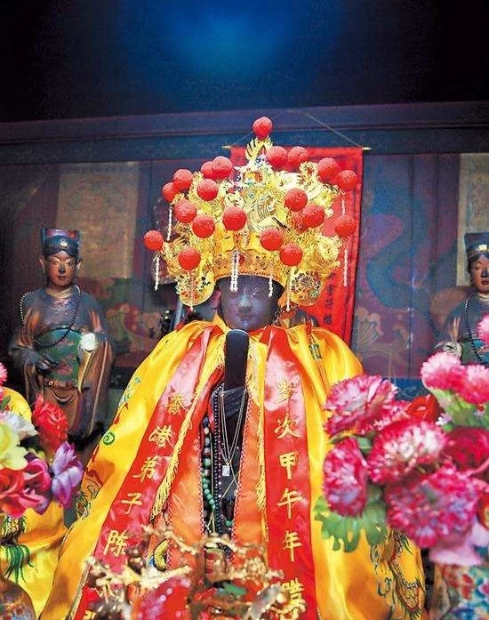 龙龟祖殿坐坤兼申(坐西南朝东北),殿内主供的马氏真仙眉如柳叶,眼如丹凤,粉面生喜,朱唇微启,璎珞横披,环结宝明,头顶凤冠,身著锦袍,神情端庄,秀美可亲。