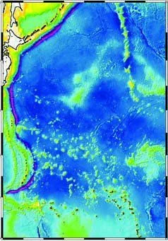 呈不规则排列的密集成群的海创限写期久连第计山。如中太平洋海山群。