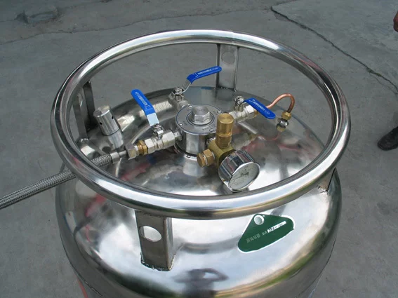 自增压液氮罐可用于液氮、液氧、液氩生物容器的液体补充和周转运输,也常用于和实验仪器、电子仪器等装置的配套使用。