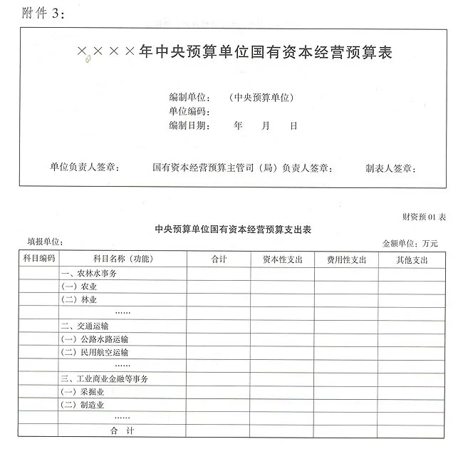 1、中央企业国有资本经营预算支出表(财资企预01表),反映企业国有资本经营预算支出安排的相关内容;