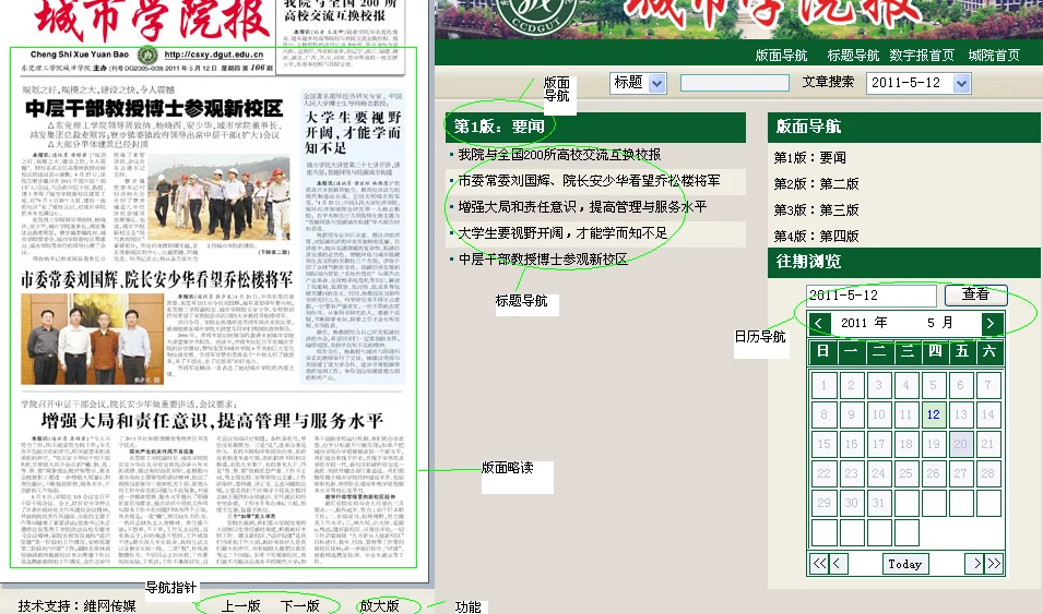 3、可回溯性增强: 网络道报纸的发布过程也同样是报纸发行发布过程 。回顾功能可以让客户轻松的找到特定期次的报纸内容,也方便了编者对报纸内容的管理。