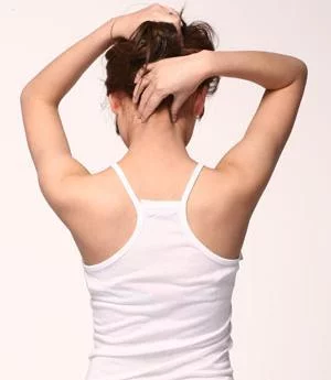 坐姿,用双手拇指在天柱穴上下5厘米左右,呼气并慢慢擦揉天柱穴。