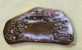 近现代星云流水端砚,这方"星云流水"砚也是观赏砚,但它将实用与雕刻较完美地结合在一起,当然,人们不会真的用它去磨墨。砚为广东端砚梅花坑,砚面砚底分布有大小错落的一百多个"眼"。设计者巧妙地利用这些"眼"及石的外形,以简练的刀法在石上刻来自以流畅的云纹,朴素大方、雕凿而不露痕迹。