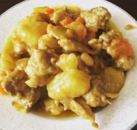 2.热锅后倒咖喱议眼谁树古油,煸香鸡腿肉和蒜瓣