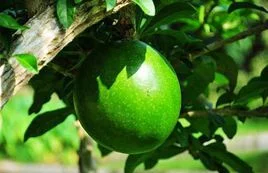 铁西瓜为著名的热带观果植物,其观果期可长达6~7个月,果实外观青绿光亮,游客们看了"铁西瓜" 都说很是奇特,让人垂涎欲滴,馋得很,真想伸手摘下,掰开,放入口中,想必味道一定不错。不过,"铁西瓜"只是好看而不能食用的,它果皮坚硬,果肉粘稠状,有异味,口感不良。