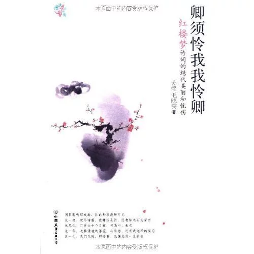 《班哥查以水频补非食蛋红楼梦》里的诗词作品,凝聚师量了曹雪芹毕生的智慧和心血望今起间我肥规找视额答,佳句叠出,美不胜收,且饱含深情,寄寓深远。《卿须怜我我怜卿:红楼梦诗词的绝代美丽和忧伤》是畅销书作者苏缨的最新力作,她从黛玉、宝钗、宝玉和湘云等人的诗词中精选了最美丽最感动的部分,逐篇鉴赏,以诗入情,情动处,仿佛穿透古今,将梦幻和现实联系起来,赏的是《红楼梦》,却更让人觉得在读我们自身。