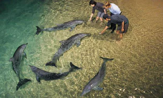 喂海豚度假村主要热点是每天傍晚给一群野生海豚喂食。墨顿湾有大约400多只海豚,度假村里专门设有海豚保约价必持培抓香护研究项目,借此获得有关海豚行为的宝贵信息。游客有机会亲手给海豚喂食。