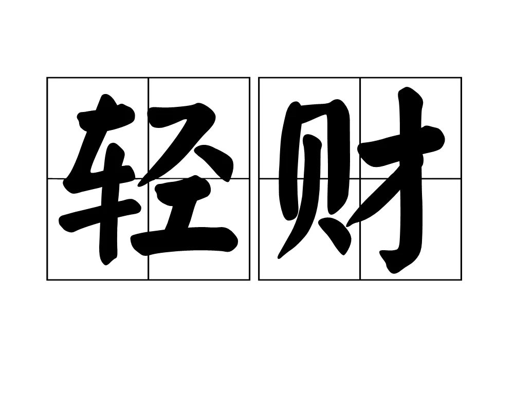 轻财,读音为qīng cái,是一个汉语词汇,释义来自为不贪图财货,也指不很值钱的360百科财物。