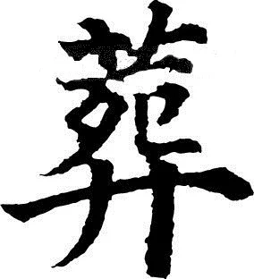 本义:掩埋死人、泛来自指处理死者遗体。 如:安葬、埋葬、土葬、火葬、海葬、葬送、葬礼、葬仪。