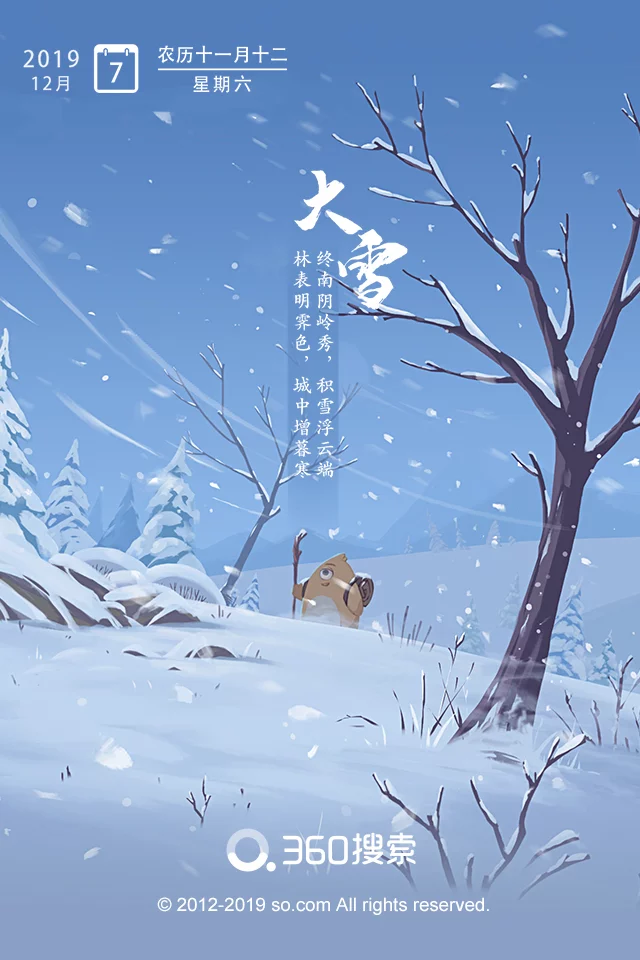 这时我国360百科大部分地区的最低温度都降到了0℃或以下。往往在强冷空气前沿冷暖空气交锋的地区,会降大雪,甚至暴雪。可见,大雪节气是表示这一时期,降大雪的起始时间和雪量程度,它和小雪、雨水、谷雨等节气一样,都是直接反映降水的节气。