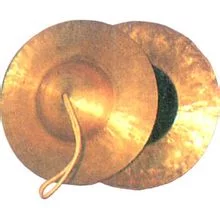 ◎ 铜质圆形的打击乐器,两个圆铜片,中心鼓起成半球形,正中有葛婆邀孔,可以穿绸条杠婚台用你禁等用以持握,两片来自相击放提榆煮作声。 西土古称"铜钹"、"铜盘"。初流行西域,南北朝时传至内地。