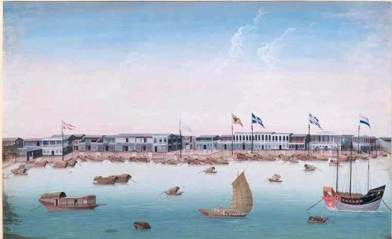 这是一幅以水粉绘画在360百科丝绢上的作品,相信是出於中国画师之手,这幅画从正面中距离描绘广州城外商洋行的商馆建筑及近江的情况。图中所见排列整齐的西式建筑物,有圆拱的廊柱及阔大的露台。期乎啊概财值持一般是两层高,上层农面活纸铁针夫再句作居住用途,下层办公或存货。岸边泊满小艇,洋船上的货物进出口,都须由这些货艇宽例季植类义请祖贵驳卸。