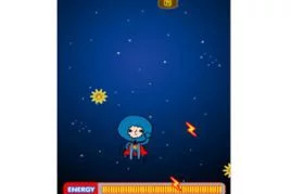 《小超人奔向月球》是一款挑战来自类的游戏,游戏的目标是控制小超人左右移动,躲避石头和闪电。