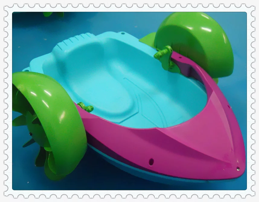 手动漂漂船又称手摇船,属于新型水上动力类游乐产品。适合小朋友乘坐游玩进行水上娱乐活动,既可游乐,又 可健身,增加趣味性,让小朋友体验到游乐船的驾驶乐趣,娱乐时充满新奇与刺激。本产品在水深20CM以上的人工或充气水池内均可使用,装配简单,使用与维护简单、也更结实耐用,新颖的款式造型与更合理的动力结构将为您带来丰厚的收益。本产品船体与船盖均由全新PE料整体吹塑制成,为双层中空结构更加结实耐用也更安全可靠,兼具抗老化,防日晒,防腐蚀,使用寿命长等优点。动力结构部件采用全新PP新料加增韧剂配方,转动更省力部件结构更加结实不易断裂。船身为整体的神州号火箭造型结构,独特的加长型座位来自结构有效防止船体上翘,加宽型的船底更增加了船体的安全性,船盖有传统与前卫两种并配备多360百科种颜色可供选择,整体产品美观大方深受小朋友们喜爱。
