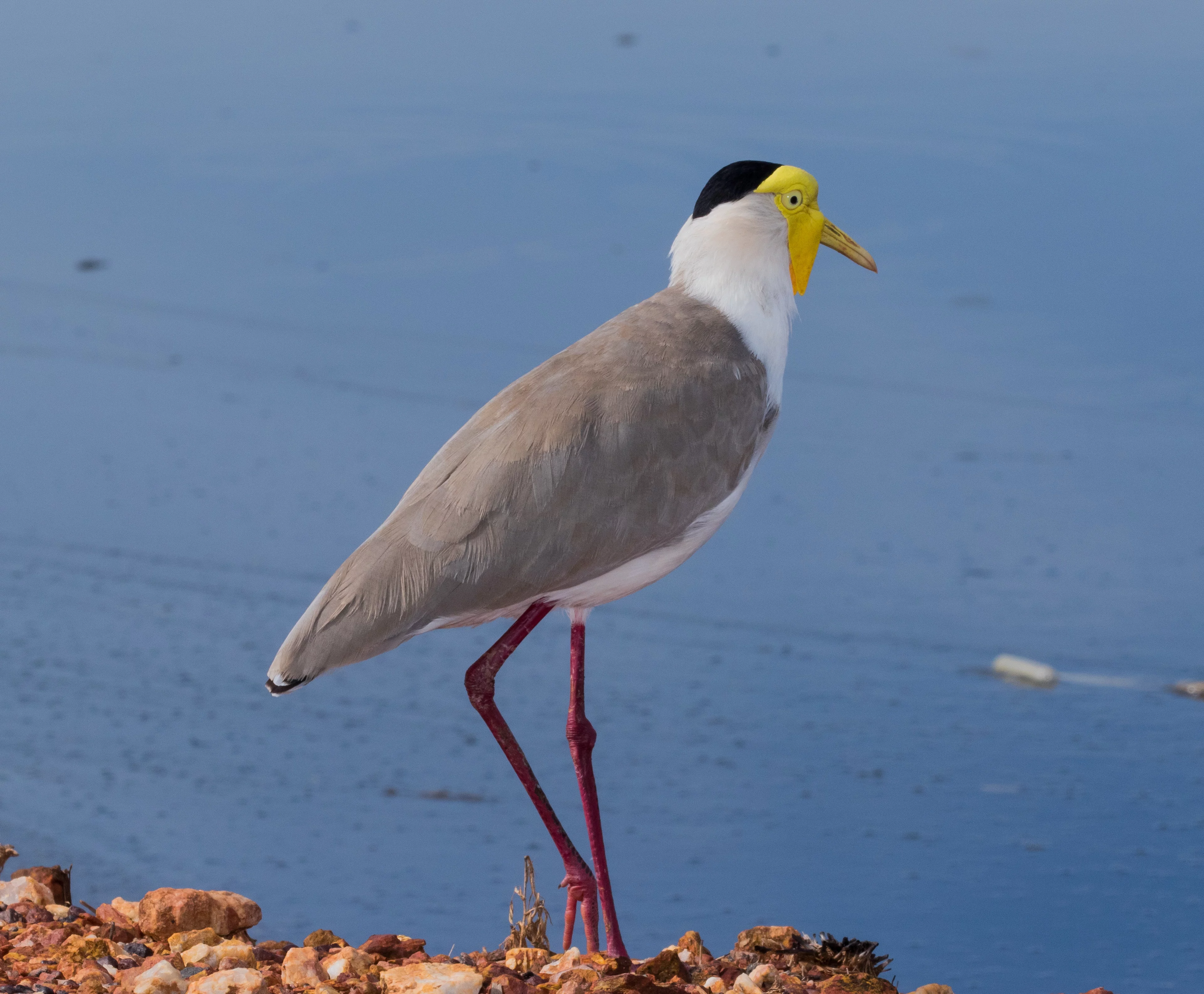 白颈麦鸡是鸻科家族中体型最大也最具代表性的一员,约35厘米(14英寸)长、370克(13盎司)重。本种有两个亚种,最近被认为可能是两种不同的物种。澳大利亚北部亚种(Vanellus miles miles)颈部为纯白色,肉垂很大为黄色。南部和东部亚种(Vanellus miles novaehollandiae)颈部有黑色条纹,肉垂相对较小。