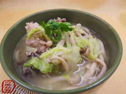 排骨熬双菇白菜是一道美味的食物,主要材料有排骨,白玉菇,蟹味菇。