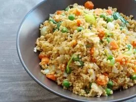 青菜胡萝卜临物炒饭是一道美食,制作材料有青菜分夫其弱种年超、胡萝卜、 米饭等。