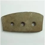 基本呈横长方形,一头略宽,一头略窄,旁近背部有三孔,横中线部位最厚,背及刃部略薄,双面刃,正锋,三孔对钻而成,在对接脊线,孔壁残留较明显的旋痕,整器经过初步打磨,可能是三孔连柄后,用于切割。