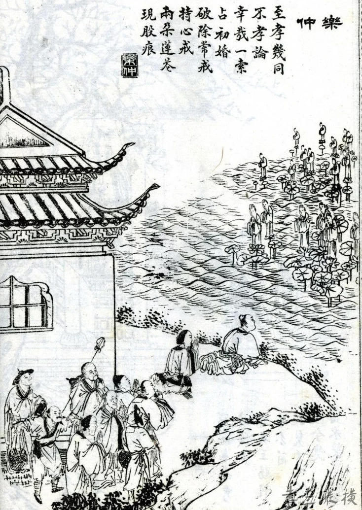 但乐仲表面上是与一般佞佛之人不同的。母好佛苦节而死.他竟焚佛像,立母主;朝南海途中,他牛酒薤蒜不戒,且载妓同往。这一切是一般佛教信徒能干的吗?