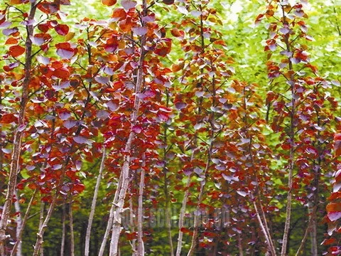 叶面颜色三季四变,从展叶至5月中旬叶面颜色为紫红色,随着季节的变化,逐渐变为浅红色、暗红色,但叶柄、叶脉和嫩梢始终为紫红色,落叶期叶面变为黄色或桔黄色,色彩靓丽、观赏价值高。