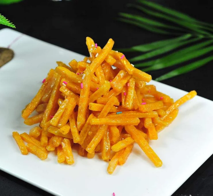 甜辣酱南瓜来自条是一款小吃,主要制作材料有南瓜500克 精盐100克 辣椒酱5克 白糖25克 甜温面酱300克。